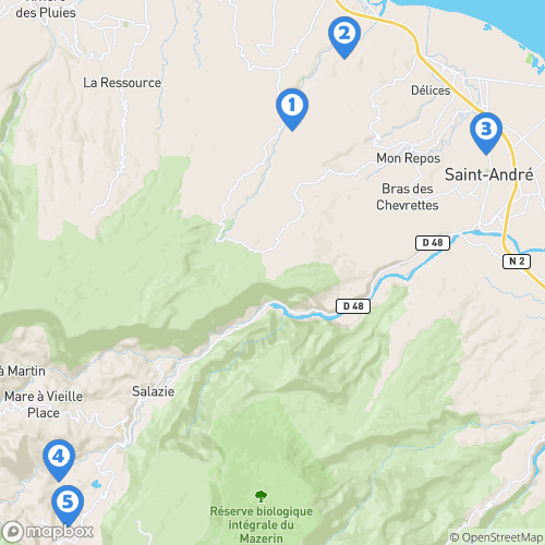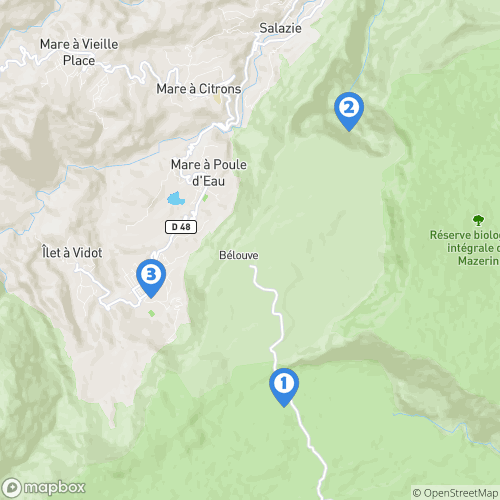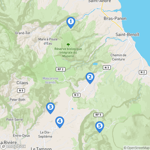 1. Cascade Blanche 2. Cascade Biberon 3. Belvédère de Bois-Court 4. Plaine des Cafres 5. Plaine des Sables