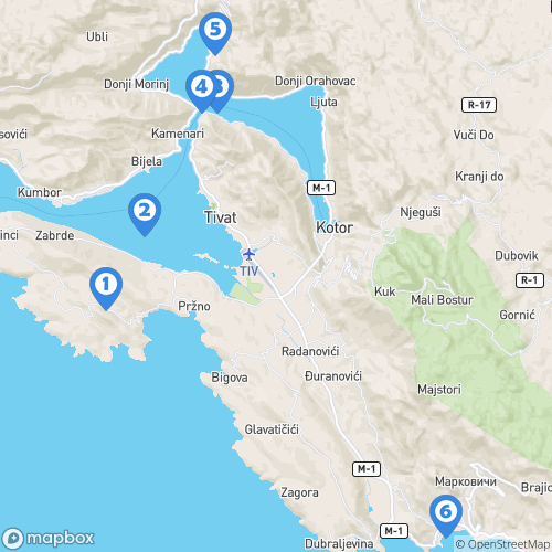 1. Péninsule de Luštica 2. Bouches de Kotor 3. Perast 4. Notre-Dame-du-Rocher 5. Rimski mozaici 6. Ville de Budva