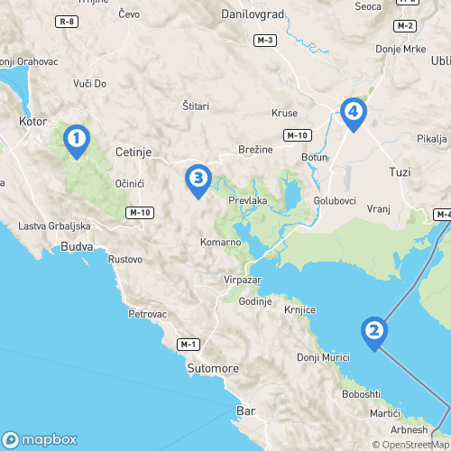 1. Mausolée de Njegoš 2. Parc national du lac Skadar 3. Rijeka Crnojevića 4. Ville de Podgorica