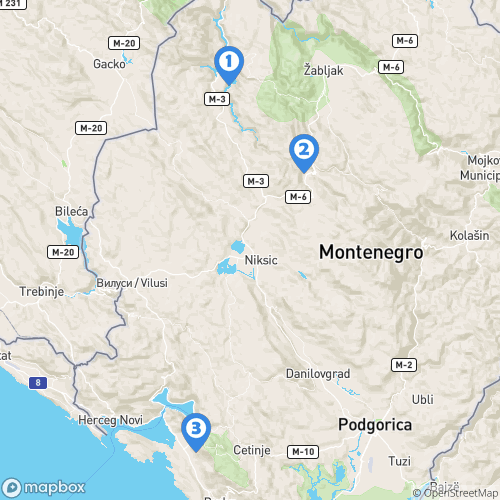 1. Lac Piva 2. Canyon de Nevidio 3. Ville de Kotor