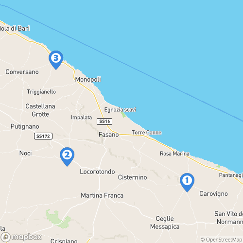 1. Parking Ostuni 2. Les trulli d'Alberobello 3. Parking Polignano a mare