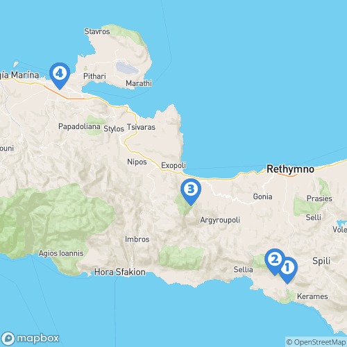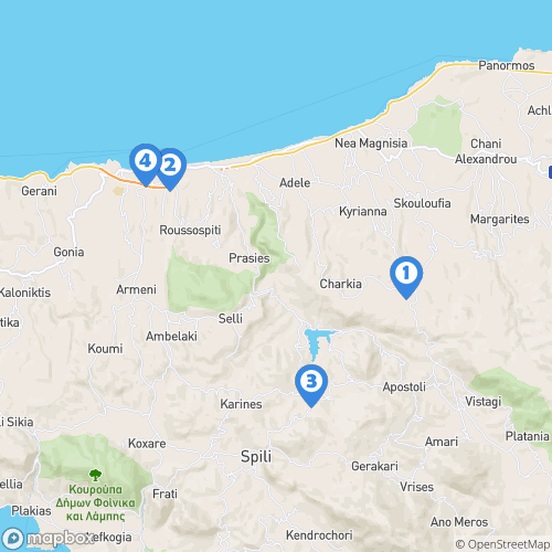 1. Gorges de Kourtaliotiko 2. Kouroupa 3. Lac de Kournas 4. La Canée