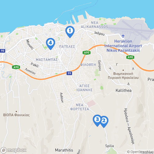 1. Ville de Héraklion 2. Palais de Cnossos  3. Site de Knossos 4. Héraklion