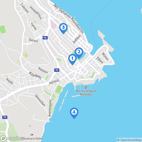 1. Ville d'Agios Nikolaos 2. Lac Voulismeni 3. Musée archéologique d'Agios Nikolaos 4. Agios Nikolaos