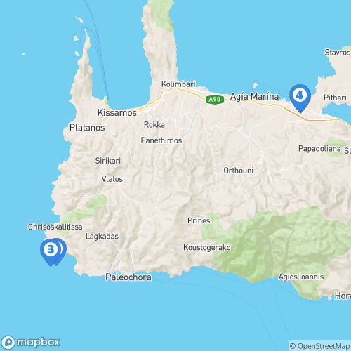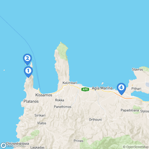1. Plage de Balos 2. Presqu'île de Gramvousa 3. Ville de la Canée 4. La Canée