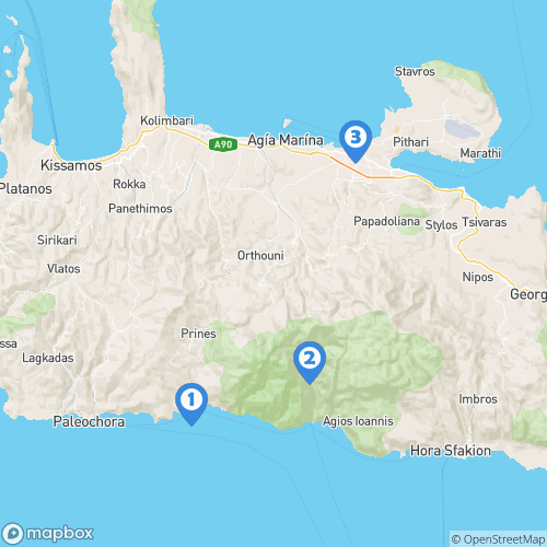 1. Plage de Sougia 2. Parc national des gorges de Samaria 3. La Canée