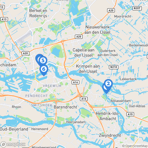 1. Canaux de Kinderdijk 2. Moulins de Kinderdijk 3. Ville de Rotterdam 4. Hôtel de ville de Rotterdam 5. Église Saint-Laurent de Rotterdam 6. Pont Erasmus