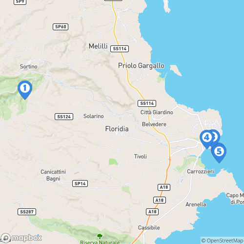 1. Nécropole de Pantalica 2. Île d'Ortygie 3. Syracuse 4. Théâtre grec de Neapolis