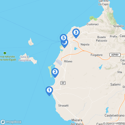1. Phare du port de Marsala 2. Motyé 3. Erice 4. Salines de Trapani & Paceco Nature