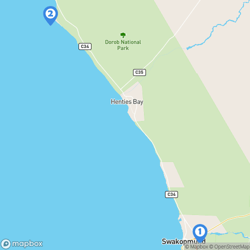 1. Ville d'Henties Bay 2. Mont Spitzkoppe