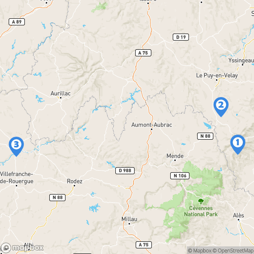 1. Massif du Tanargue 2. Château d'Arlempdes 3. Figeac