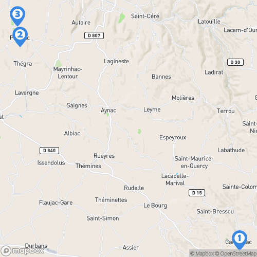 1. Cardaillac 2. Padirac 3. Gouffre de Padirac
