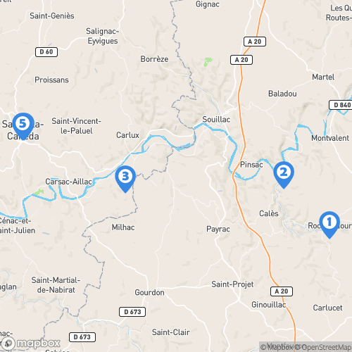 1. Rocamadour 2. Grottes de Lacave 3. Château de Fénelon 4. Périgord noir 5. Sarlat-la-Canéda