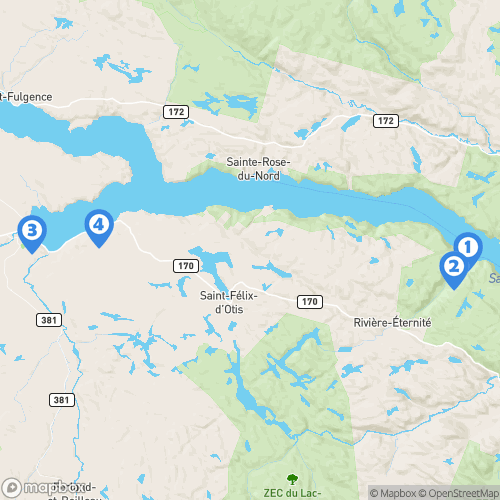 1. Cap Trinité 2. Parc national du fjord du Saguenay 3. La Baie 4. Boulevard De La Grande-Baie Sud