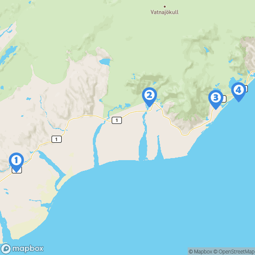 1. Canyon Fjadrargljufur 2. Cascade Svartifoss 3. Lac Fjallsárlón 4. Lagon du glacier Jökulsárlón