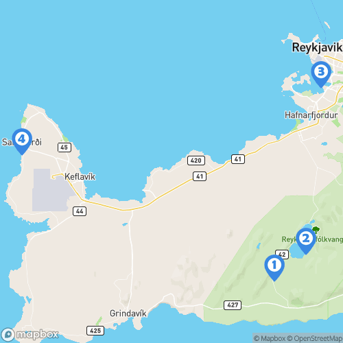 1. Solfatares de Seltun (Krýsuvík) 2. Lac de Kleifarvatn 3. SKY LAGOON 4. Sandgerði