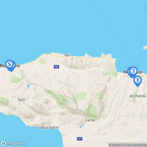 1. Porta Suites 2. Musée archéologique d'Héraklion 3. Site de Knossos 4. Vieille ville de Rethymnon 5. Philikon Luxury Suites