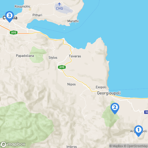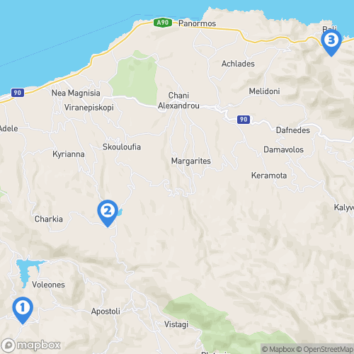 1. Village d'Argiroupoli 2. Lac de Kournas 3. Ville de la Canée